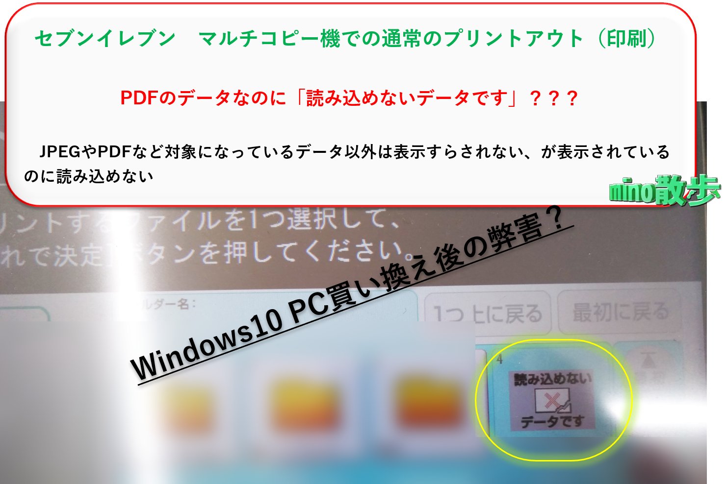 Illustratorやベクター系のソフトから書き出したPDFファイルで 、複雑な内容の場合は保存の仕方に要注意 です。 コンビニのマルチコピー機などでPDF印刷をする場合に、異常に時間が掛かる!プリントされない!というトラブルを避けるための方法でした。